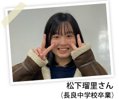 高校1年生の私は、将来の夢が無く、進路は専門学校でいいやと思っていました。しかし学校の先生に「決まっていない人こそ大学に行ったほうが良い」と言われ、母といろんな大学のオープンキャンパスに行き、話を聞きました。その中で椙山の情報デザイン学科に興味を持ち、そこからは毎回オープンキャンパスに行き、行くたびにこの大学に行きたい気持ちが湧いてきました。私と同じように将来の目標がなかなか決まらずに焦っている人も多いと思いますが、いろんな大学に行くとやりたいことが見つかると思います。私は総合型選抜のプレゼンテーションを行う入試方法を選びました。プレゼンの資料を集めたり、夏休みから浅岡先生に志望理由書や面接の練習を何度も指導してもらいました。母にも入試の前日までプレゼンの練習に付き合ってもらいました。たくさんの支えと協力があり、第1志望校に合格することができました。本当にありがとうございました。