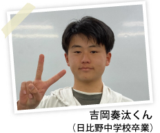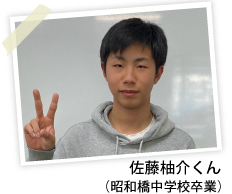 高校生になり部活や学校行事にのめり込んでいたので、本格的に受験勉強を始めたのは6月下旬からでした。入試までの期間は短かったですが、維新塾の活用法や自らの自習法を見直すことで、他の人達を追い抜かすことができたと思います。特に「自習の質」にこだわりました。市販の参考書と講座のプリント、個別の授業でもらう宿題を使い、苦手な単元を理解できるまで、納得できるまでとことん解き続けました。2日間丸々1つの単元に費やすという日もありました。そして、週に2回の中村先生と浅岡先生の授業でわからないところを聞くというサイクルで受験勉強を進めていきました。自習はほぼ毎日のように通っていたので、欲しいプリントがあればすぐにもらうことができたり、小学生から6年以上僕を知る先生方に勉強の現状を話すことで不安を減らしたりと授業以外でも維新塾をフル活用しました。維新塾の先生方、最後まで攻めた受験をしていた僕をサポートしてくれてありがとうございました。